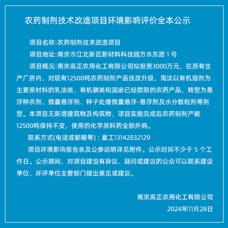 定將現有項目整體搬遷至江蘇省如東沿海經濟開發區。搬遷完成后,將形成年產1000噸戊唑醇、200噸吡丙醚、500噸噻蟲啉、200噸環丙唑醇原藥的生產規模... |